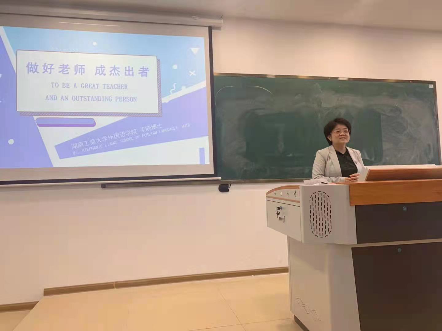 10月15日中午湖南工商大学梁晓博士应邀在综合楼教室作了题为“做杰出的人,做杰出的教师”的讲座。两个小时的分享中,梁晓谈求学、思政教学比赛、人生历程中的体验,鼓励外院老师们“执思政之念,行平凡之路”,讲座由外国语学院副院长曾望教授主持。学院院长姚佩芝博士、专业教师等聆听了讲座。