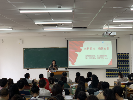 接着,姚院长以今年第三十九个教师节的主题“躬耕教坛,强国有我”为中心,从人才培养方案出发,向全体教师阐述了外语语种目前所面临的困境和瓶颈,也指出了新的出路和方向。同时,她总结了学院已完成的新进教师培训工作,并宣布启动“青蓝工程”,助力青年教师成长。