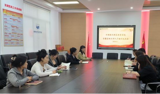 为进一步规范学院学籍管理工作流程,提升学籍管理规范性与服务水平,保障教学秩序有序运行,9月25日下午,外国语与国际教育学院在5教113会议室组织全体辅导员召开学籍管理工作培训交流会。会议由学院党总支书记杨建波主持并作开场动员,邓婷老师担任主讲。会议围绕学籍学历学位管理相关规章制度开展深入解读,进一步明确学籍管理规范与流程要求。