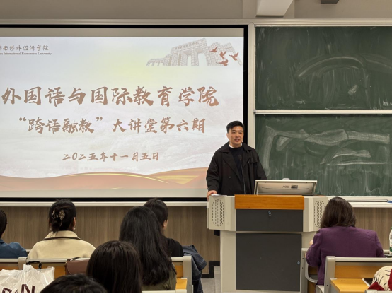 11月5日下午,外国语与国际教育学院在第五教学楼106教室举办“跨语融教”大讲堂第六期活动。本期特邀教务处处长汪金龙作题为“DeepSeek+AI教育工具链:教学科研实战应用”的主题分享,院长许二鹏主持活动,学院全体教职员工参与。
