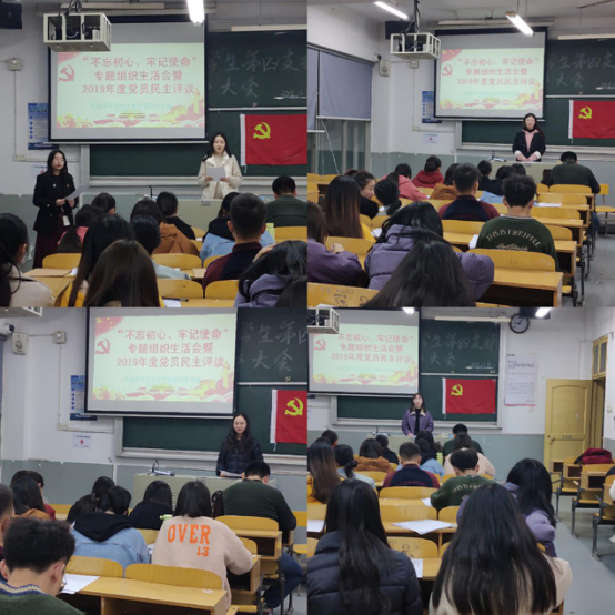 2019年12月8日晚上19点整,外国语学院学生党员第四党支部在五教508教室开展了2019年度“不忘初心、牢记使命”专题组织生活会暨民主评议党员会。本次会议由第四党支部书记朱双同志主持,第四党支部全体党员、预备党员出席了本次会议。