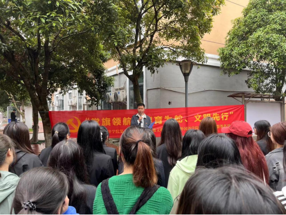 本次活动向在场同学宣讲《第一届“大学生基础文明创建月”活动实施方案》和文明公约;并由“文明寝室”优秀学生代表刘懿洁发言,给同学们树立了榜样,起到了带头示范作用;楼栋党支部学生副书记李珊珊带领全员进行“我承诺,我践行”庄严宣誓;学院党总支书记尹理智对大家提了两点要求,首先全体党员、干部要做文明的践行者,以良好的文明习惯和行为举止为校园文明建设贡献我们自己的力量。其次我们要做文明的劝导者,积极主动协助学院和老师的工作,让外国语国际教育学院在全校的文明创建中取得优异的成绩。
