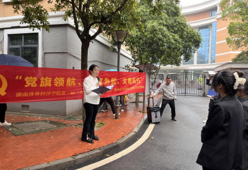 2024年4月11日12点,西十六楼栋在楼栋前坪组织“党旗领航,德育为舵,文明先行”基础文明创建月宣誓签名活动。楼栋党支部书记李明主持,外国语学院党总支书记尹理智,宿舍管理负责人肖俊乾,西十六楼栋党支部副书记黄雨婧、楼栋主任戴玲芳,学院公寓管理委员会干部,西十六楼栋管理委员会干部,西十六学生党员代表和文明寝室代表出席了本次活动。