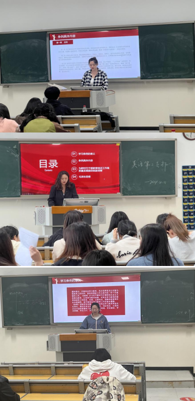 为贯彻落实中央以及校党委关于开展党史学习教育的要求,推动党史学习教育常态化长效化,2024年4月11日中午,外国语(国际教育)学院党总支组织各党支部在五教各支部党员活动室开展了学习《党史学习教育工作条例》的主题党日活动,由各支部书记或副书记主讲,全体党员、预备党员、发展对象参加学习。