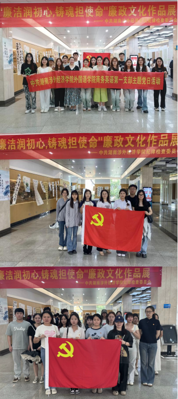 文以化人,廉以修身。为进一步落实廉政文化进校园,2024年5月13日-24日,外国语学院党总支组织各支部全体成员分批前往图书馆一楼大厅参观由学校纪律检查委员会举办的“廉洁润初心,铸魂担使命”廉政文化作品展。