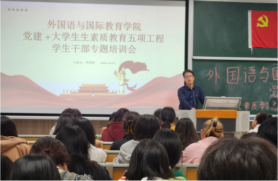 ——外国语与国际教育学院举行党建+大学生素质教育五项工程学生干部专题培训会