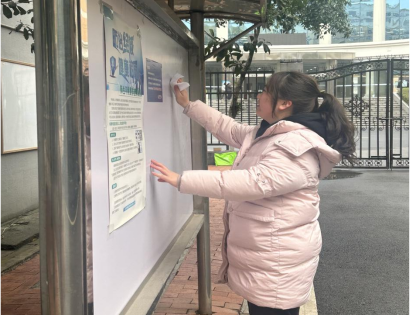 英语2203班学生党员毛舒蕾同学边擦拭宣传栏边说:“在窗明几净中感受劳动价值,这正是对雷锋精神最生动地诠释。”