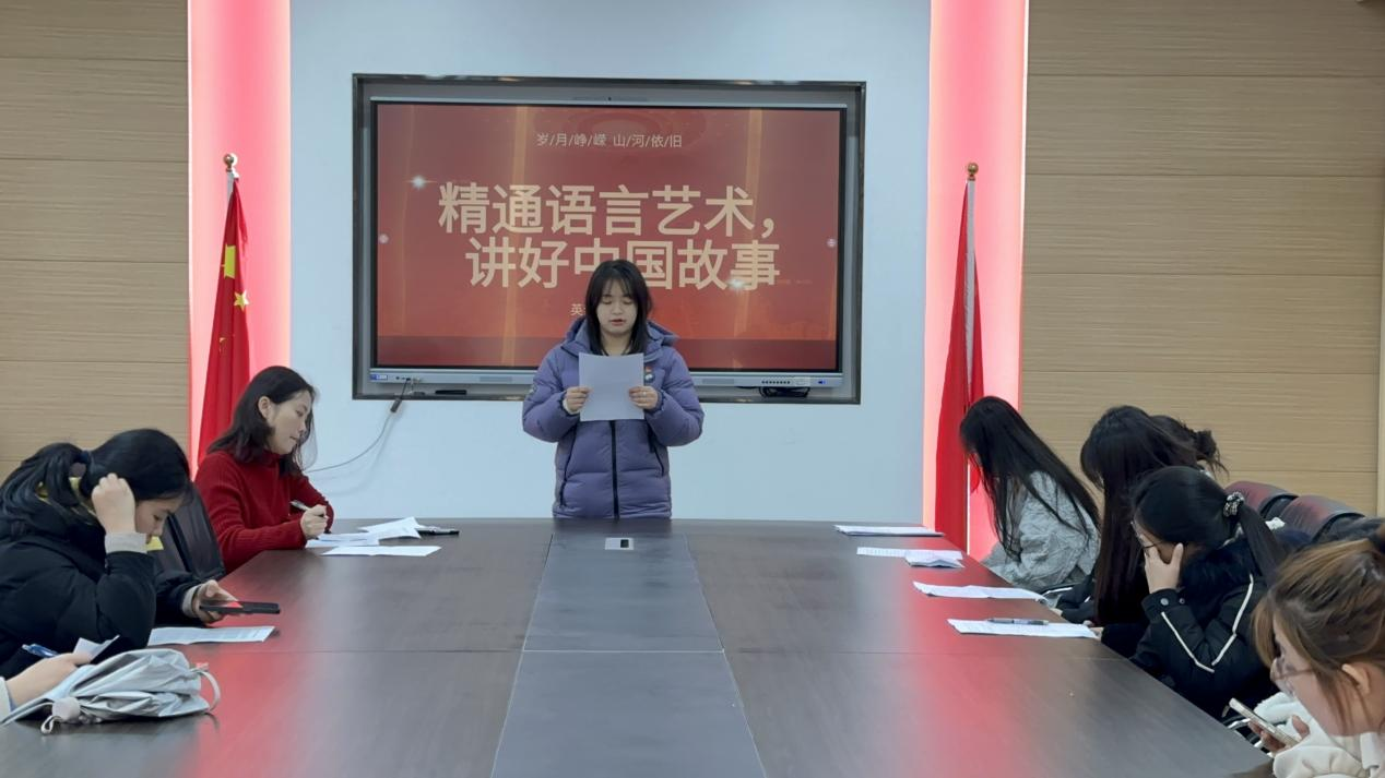 活动最后,教工第一党支部书记杨颖对党员们的分享进行了点评,肯定了大家在语言表达、内容组织和精神内涵把握方面的进步,同时提出建议,鼓励大家继续深入学习党史,不断提升语言水平和综合素养,以更加自信的姿态向世界展现真实、立体、全面的中国。