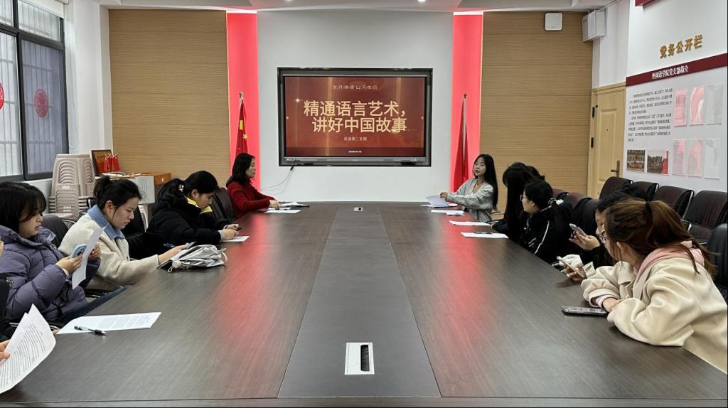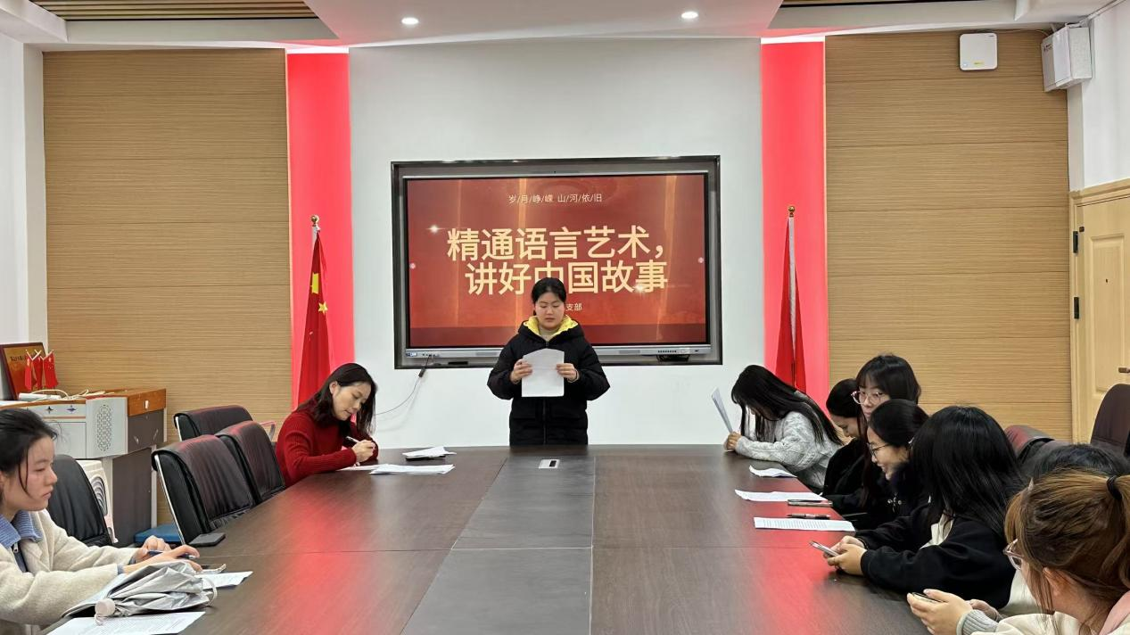 为深入学习贯彻习近平新时代中国特色社会主义思想,落实学院“五项工程·青锋计划”育人目标,充分发挥“全国党建工作样板支部”示范引领作用,外国语与国际教育学院英语第二党支部于2025年3月14日在五教113党员活动室举办了“精通语言艺术,讲好中国故事”红色故事双语分享会。作为每周五学生党支部与教工党支部联建系列活动的重要组成,本次活动由外国语与国际教育学院英语第二党支部轮值承办,深度融合“样板支部领航”与“写作与口才训练工程”双项目优势,外国语与国际教育学院英语第二党支部全体学生党员参加。
