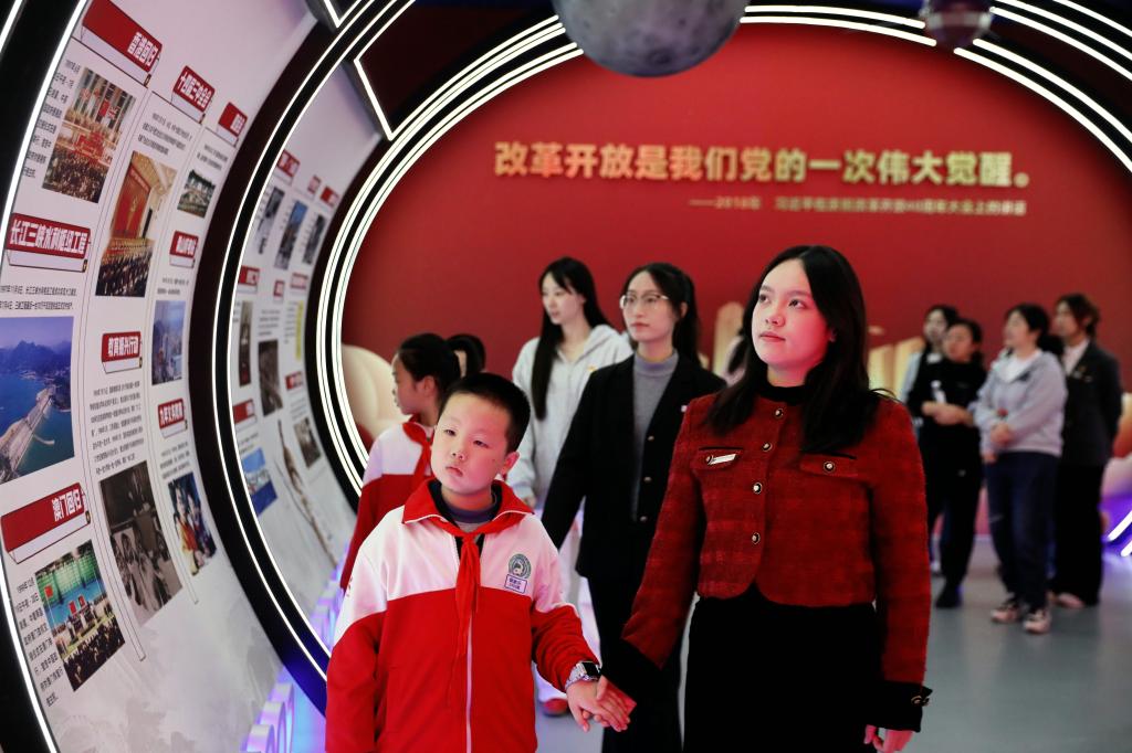 多元互动让红色知识传递更具感染力。“有声书问答”专区里,孩子们踊跃应答,在趣味互动中深化对党的二十大精神的理解;“红军过雪山实景”展区通过场景还原与深情讲解,让长征岁月的艰辛与信仰力量直抵人心;“改天换地”展区的巨幅历史画卷,全景呈现新中国成立初期的建设成就;“惊天动地”展区以贴近生活的视角,展现新时代中国特色社会主义辉煌成果,让孩子们切实感受国家发展的日新月异。
