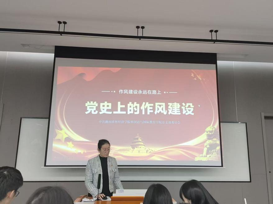 近日,为深入学习贯彻党的优良传统,加强新时代学生党员的作风建设,11月6日晚七点,外国语与国际教育学院在世纪讲堂3号教室组织开展了“作风建设永远在路上”主题党课。本次党课学习由学生第二支部书记李明老师担任主讲,旨在引导广大学生党员筑牢思想根基,永葆先进本色。全体学员参加了本次学习。