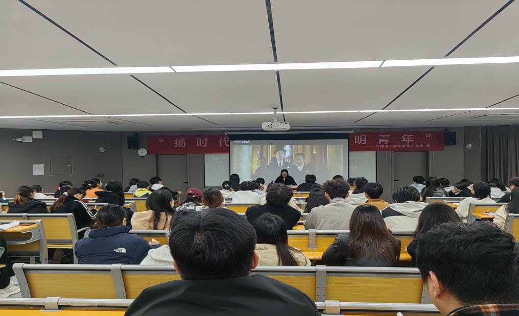 为推动党的创新理论入脑入心,提升党员发展对象的理论素养与政治觉悟,11月11日晚,外国语与国际教育学院党员发展对象培训班在世讲3号开展视频学习活动。活动由学院党总支书记杨建波主持,全体20期发展对象集中观看《高校总政课:习近平新时代中国特色社会主义思想专题讲座》视频,深化对党的创新理论的理解。