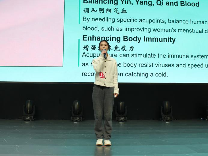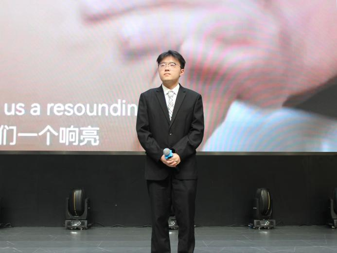 活动伊始,全体人员肃立齐唱国歌,进一步凝聚文化传播初心。主持人现场清晰介绍赛事规则、评分标准及流程安排,为后续环节有序推进奠定基础。赛事按既定流程层层展开,14位选手依次登台,围绕“中国故事”主题进行3分钟外语演讲。他们以语言为媒介,精准平衡文化传播的真实性与艺术性,生动诠释中国故事的时代内涵,充分展现了外语综合应用能力与文化传播素养。评委团多维度考量选手表现,既聚焦语言表达流畅度、内容主题深度等核心维度,又结合演讲感染力与文化传递精准度综合评判,同时紧扣“以小主题讲大时代”的赛事要求,针对选手在故事选取、文化解读等方面的表现给出专业客观的评价,为赛事公平公正评选提供了有力保障。