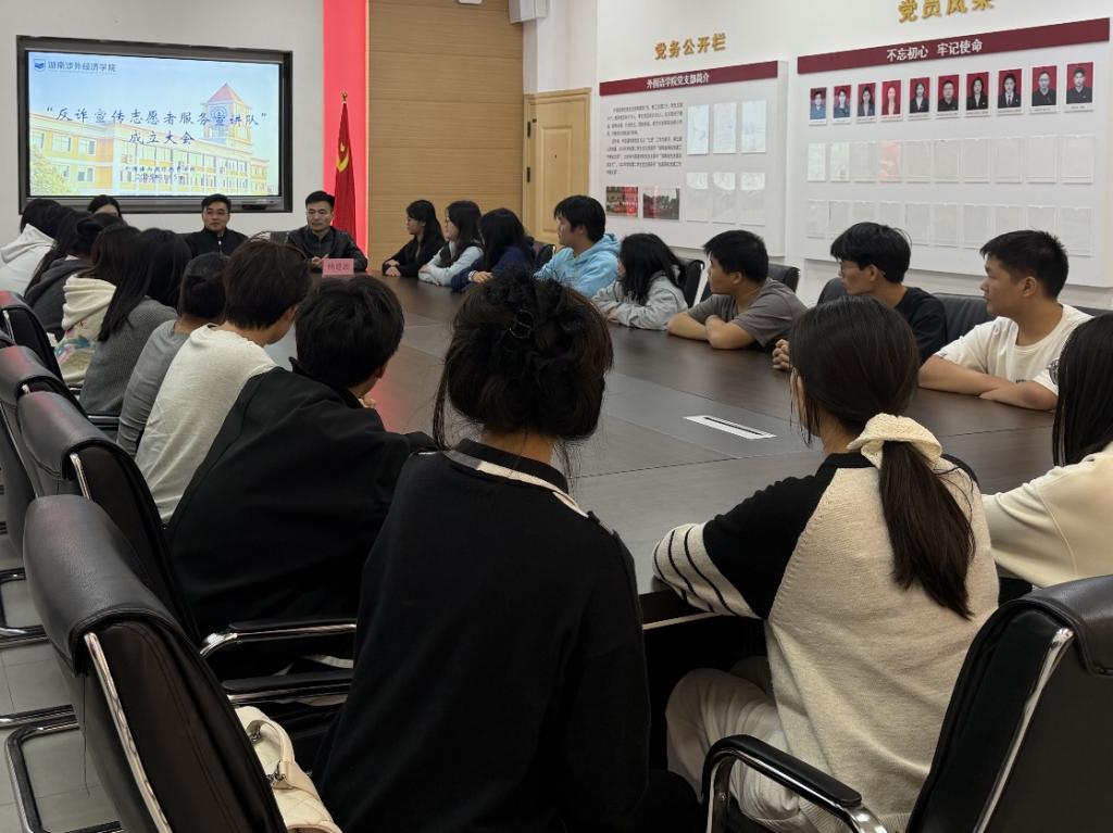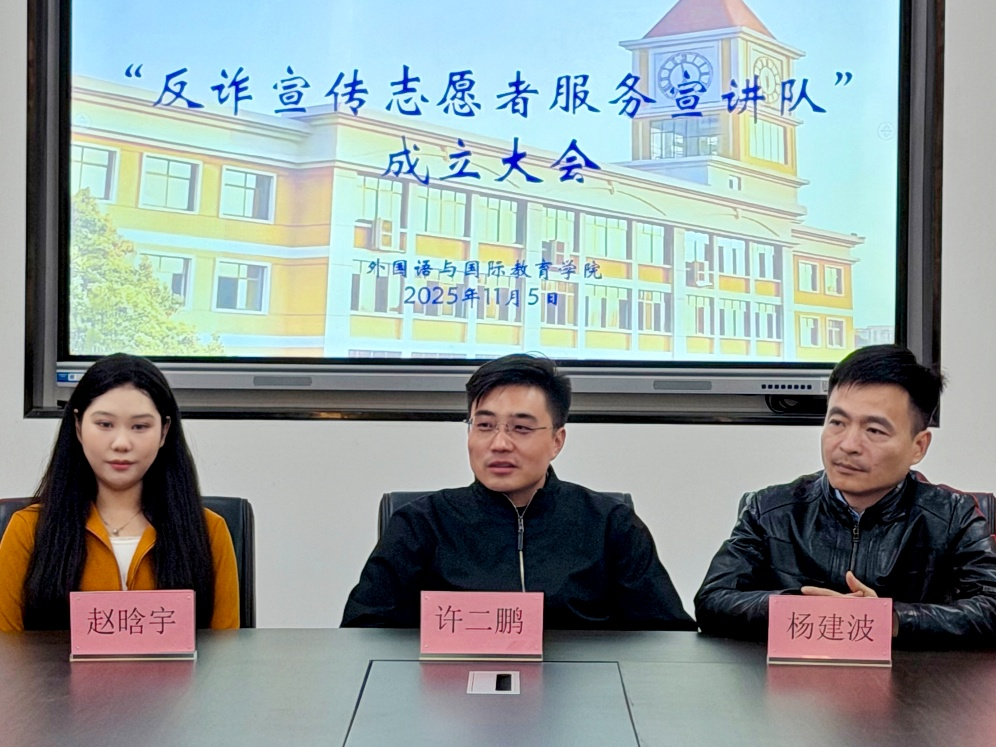 11月5日下午,外国语与国际教育学院在113会议室召开“反诈宣传志愿者服务宣讲队”成立大会。本次大会聚焦“筑牢反诈意识,加强反诈宣传”这一主题,旨在针对提升学生反诈防骗意识,切实筑牢反诈青春防线。