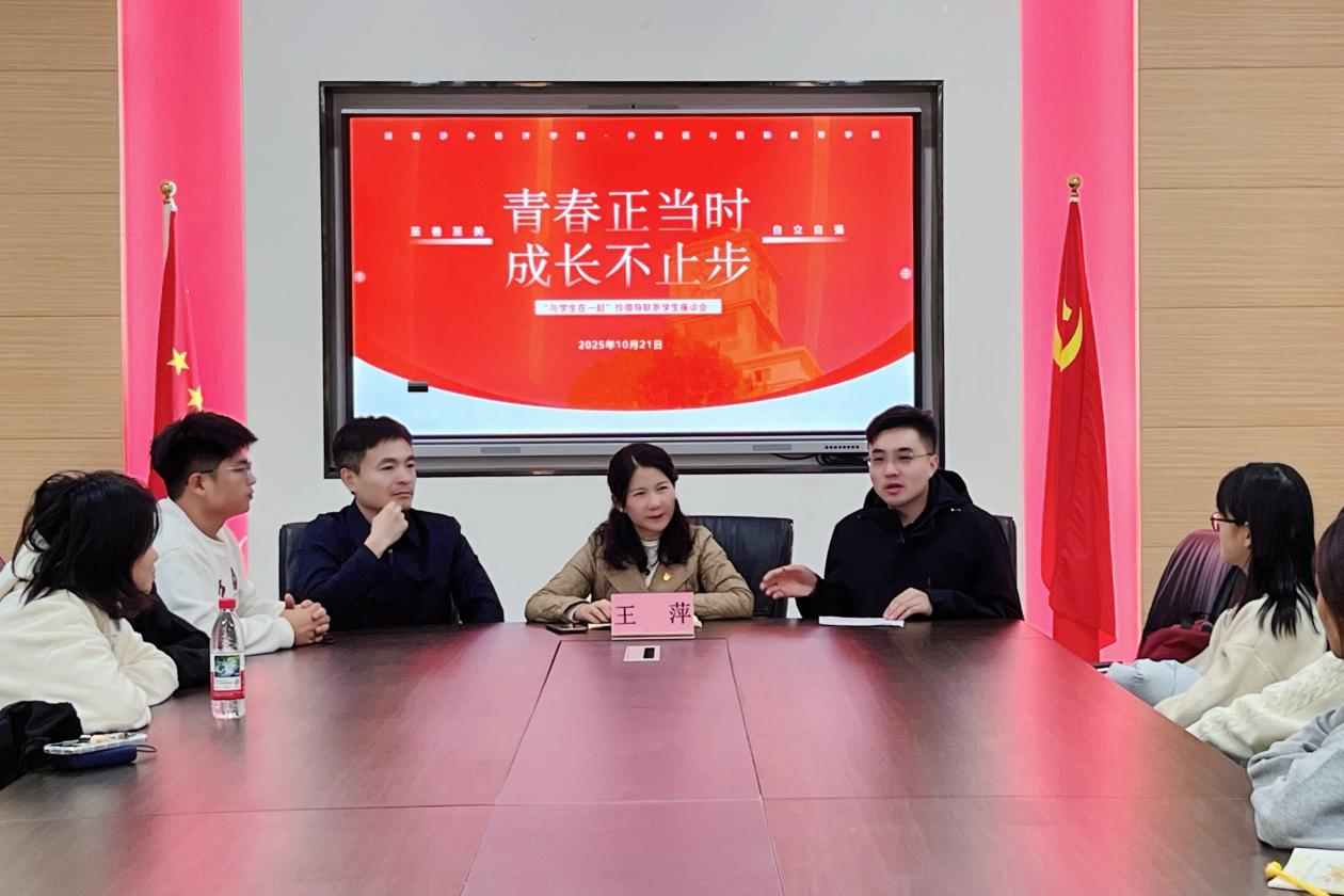 10月21日晚,湖南涉外经济学院副校长王萍走进外国语与国际教育学院,以“青春正当时,成长不止步”为主题召开新生代表座谈会。外国语与国际教育学院院长许二鹏、党总支书记杨建波陪同座谈,师生面对面交流,共商校园建设与新生成长发展事宜。