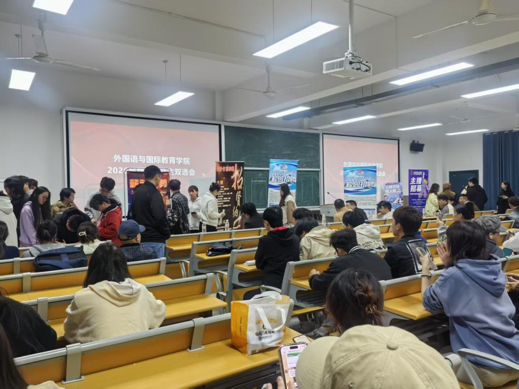 2025年10月30日下午,湖南涉外经济学院外国语与国际教育学院2026届毕业生秋季双选会(一)在五教学楼一楼教室顺利召开。此次双选会共有近30家用人单位现场参会招聘,提供招聘岗位超300余个;学院2026届毕业生到场与用人单位交流接洽,积极投递简历,现场气氛热烈。
