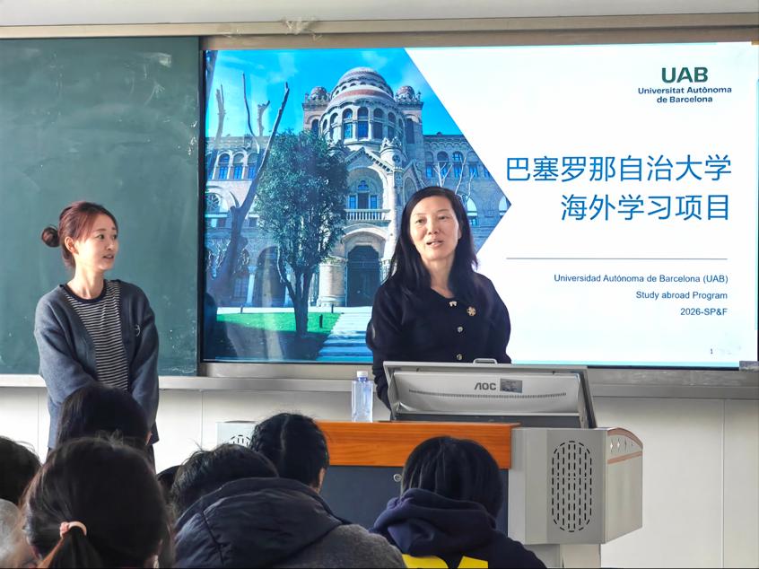 为深化我校国际化办学水平,为西班牙语专业学子搭建赴海外顶尖学府深造的桥梁,2025年10月28日中午12时,备受关注的西班牙巴塞罗那自治大学交换学习项目宣讲会在第五教学楼209教室圆满落幕。本次宣讲会由我校国际交流与合作处与外国语学院联合举办,吸引了全校各年级西班牙语专业学生的踊跃参与,现场座无虚席,气氛热烈。