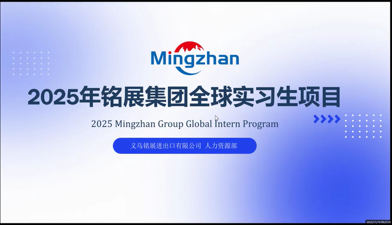 学院在结合毕业生就业需求和外语专业发展方向后,与行业口碑良好的义乌铭展进出口有限公司进行合作,以线上专场形式搭建对接平台。宣讲会上,义乌铭展进出口有限公司HR陈凯凯先向毕业生介绍该公司成立于2004年,总部在义务,在杭州、广州、上海都设立分布,是目前是国内传统外贸市场排名前列的公司,公司业务覆盖阿根廷等南美国家,在Facebook、TikTok等海外平台上拥有120余万粉丝,并带领毕业生云参观公司,围绕“2025年铭展集团全球实习生项目”,结合外贸行业趋势,详细介绍了外贸业务顾问等岗位的工作内容、能力要求、培训计划、薪资构成及晋升体系,帮助学生全面认识岗位前景。为增强内容实用性,企业还邀请了在职的外国语与国际教育学院的23届毕业生王彦婷分享经验。