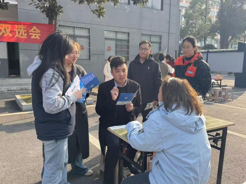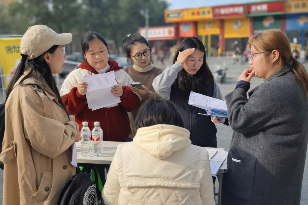 12月17日下午,外国语与国际教育学院2026届毕业生冬季双选会在第五教学楼前坪顺利举办。学院执行院长、党总支书记许二鹏,党总支副书记匡希茜及全体毕业班辅导员到场指导,鼓励毕业生们展示自我,自信求职。