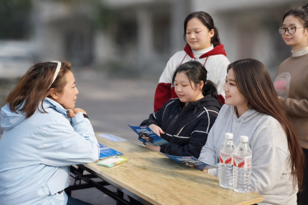 双选会现场气氛热烈,企业代表与学院领导热情交流,深入了解学院专业设置与毕业生生源情况;毕业生们密切关注外贸翻译、跨境电商运营、外语培训等与专业紧密相关的岗位,积极与企业代表沟通,咨询岗位要求与发展前景,展现出扎实的专业能力和主动的求职姿态。企业代表也耐心解答疑问,部分企业还通过现场展示团队工作场景,让毕业生直观感受职场环境。学院领导带领辅导员们全程参与双选会,并细致询问毕业生求职进展与困难,开展简历指导与岗位匹配服务,帮助学生明确求职方向。
